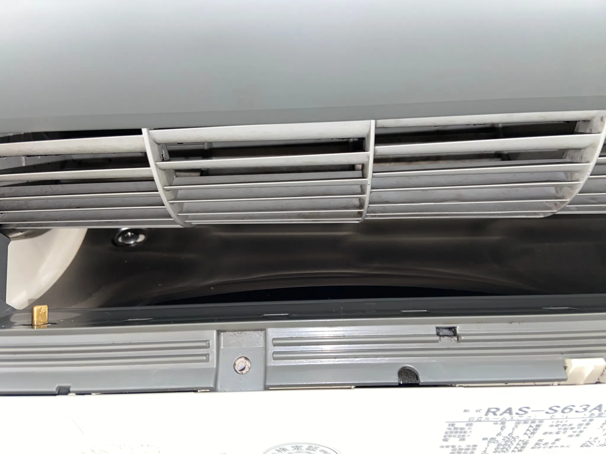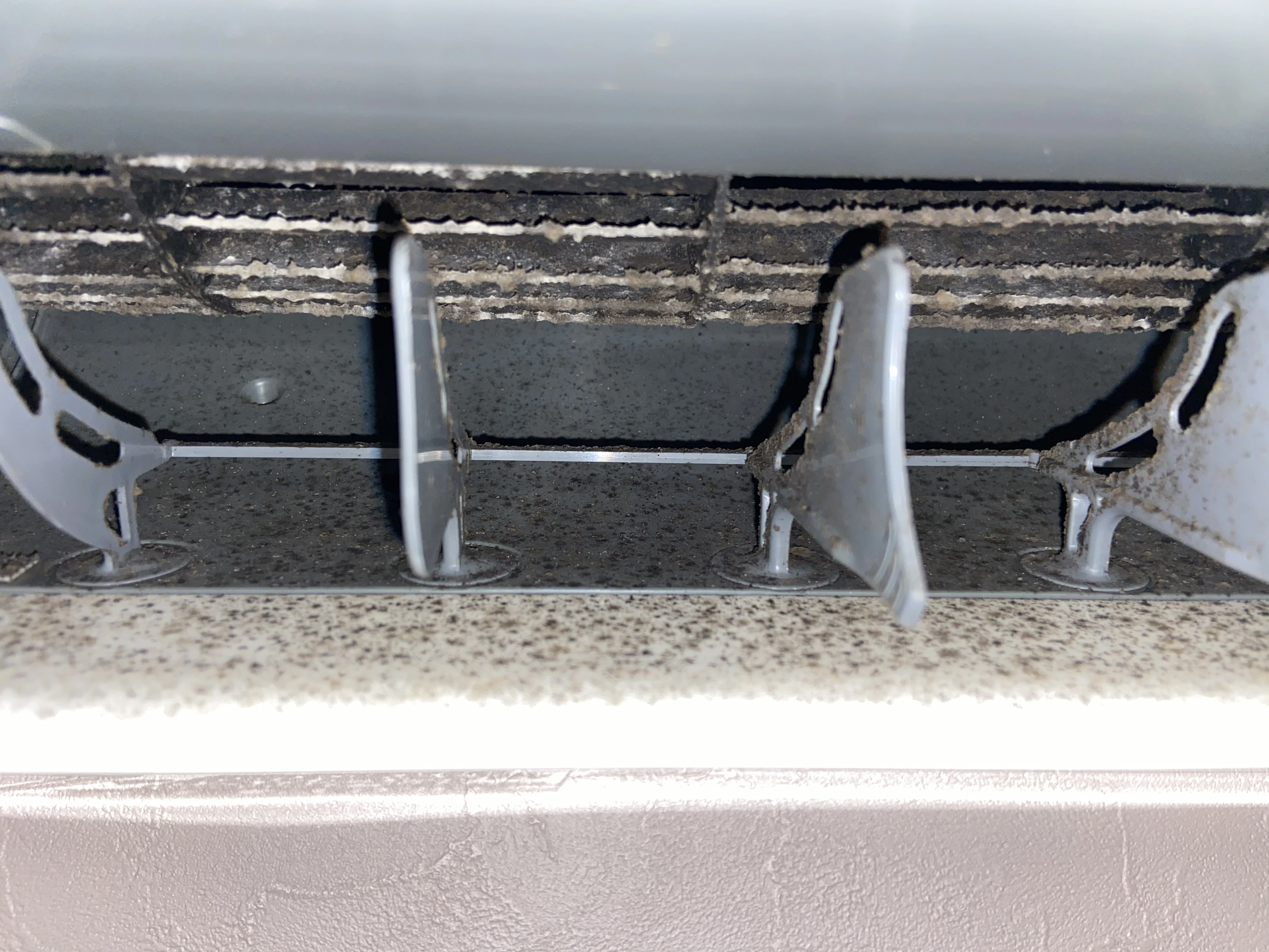 寝室のエアコンも、見た目は比較的きれいでしたが、吹き出し口内部には黒いカビが点在しており、フィルターの奥にはうっすらとホコリが溜まっている状態でした。
