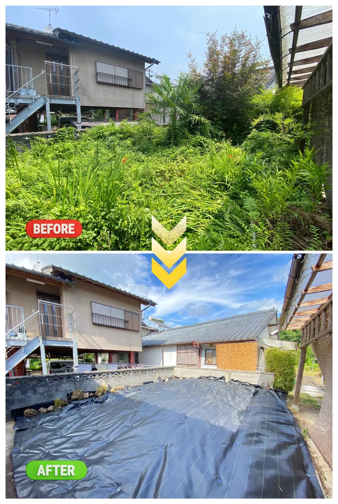 「長年の悩みだった裏庭の雑草。これでようやく生い茂っていた雑草の悩みが解消された。