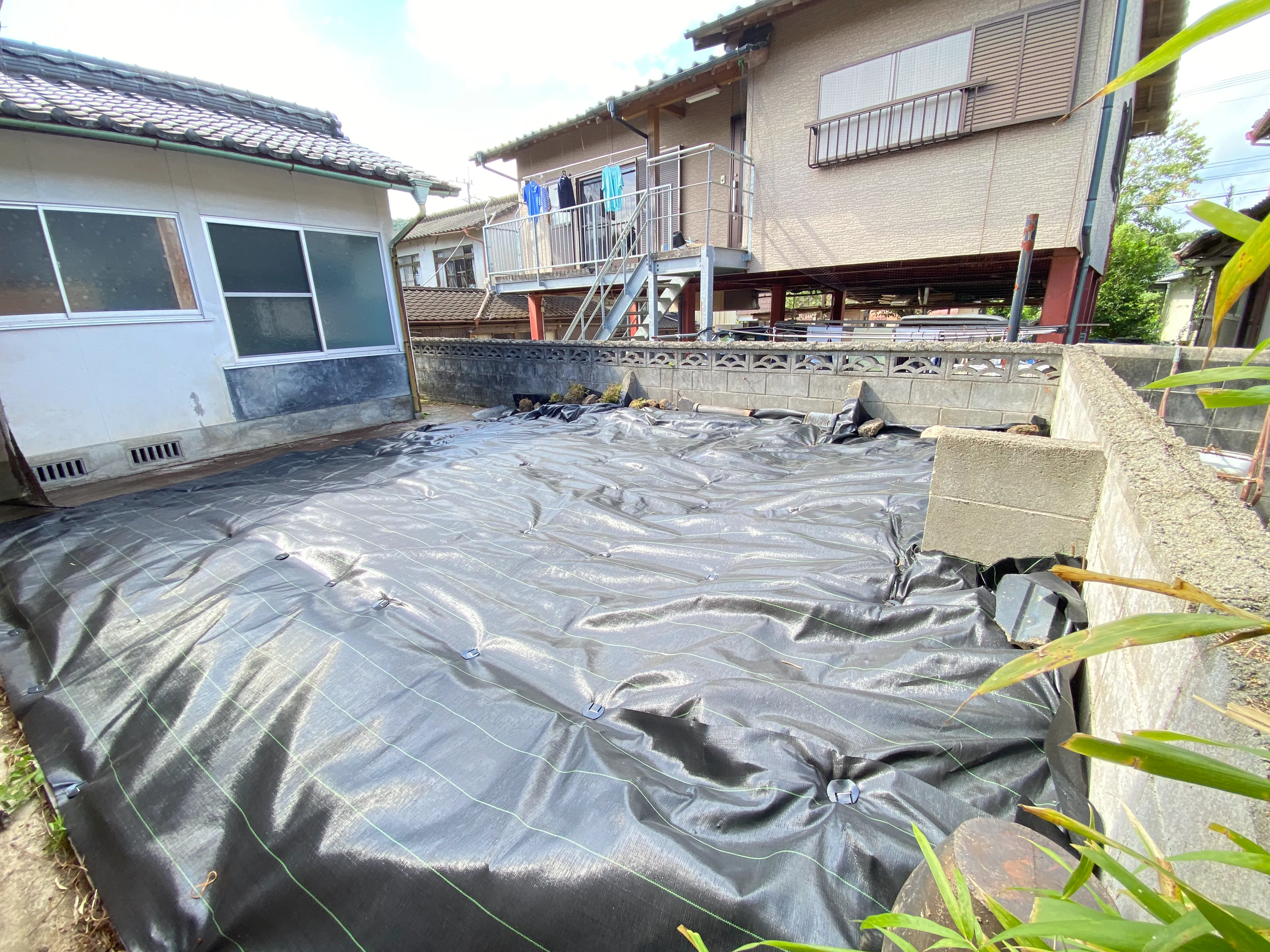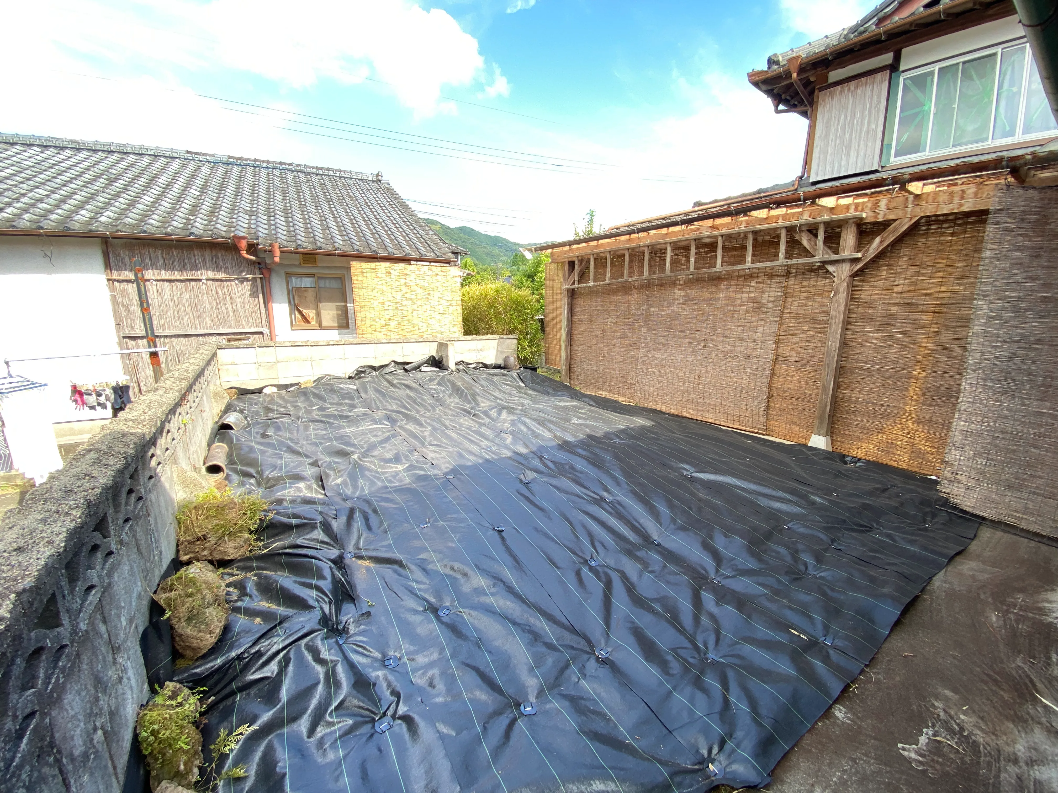 上益城郡甲佐町にお住まいのお客様より、裏庭の雑草対策として「防草シートを張ってほしい」とのご依頼をいただきました。