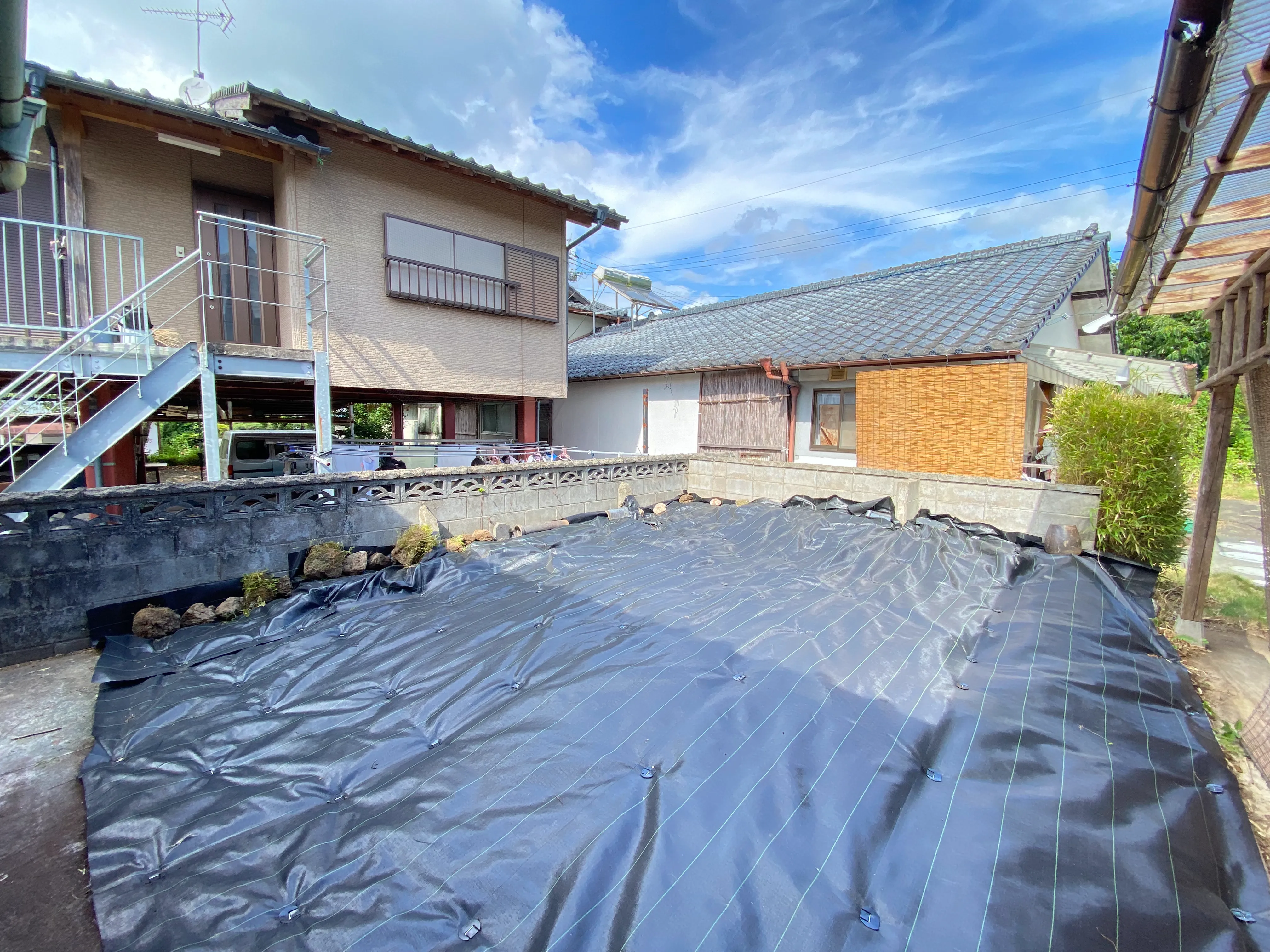 シートを敷き詰めたことで、裏庭全体がすっきりと落ち着いた印象に。
