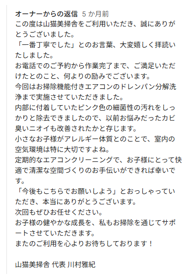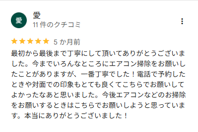 今回のお客様より、Googleクチコミで星5の評価をいただきました。