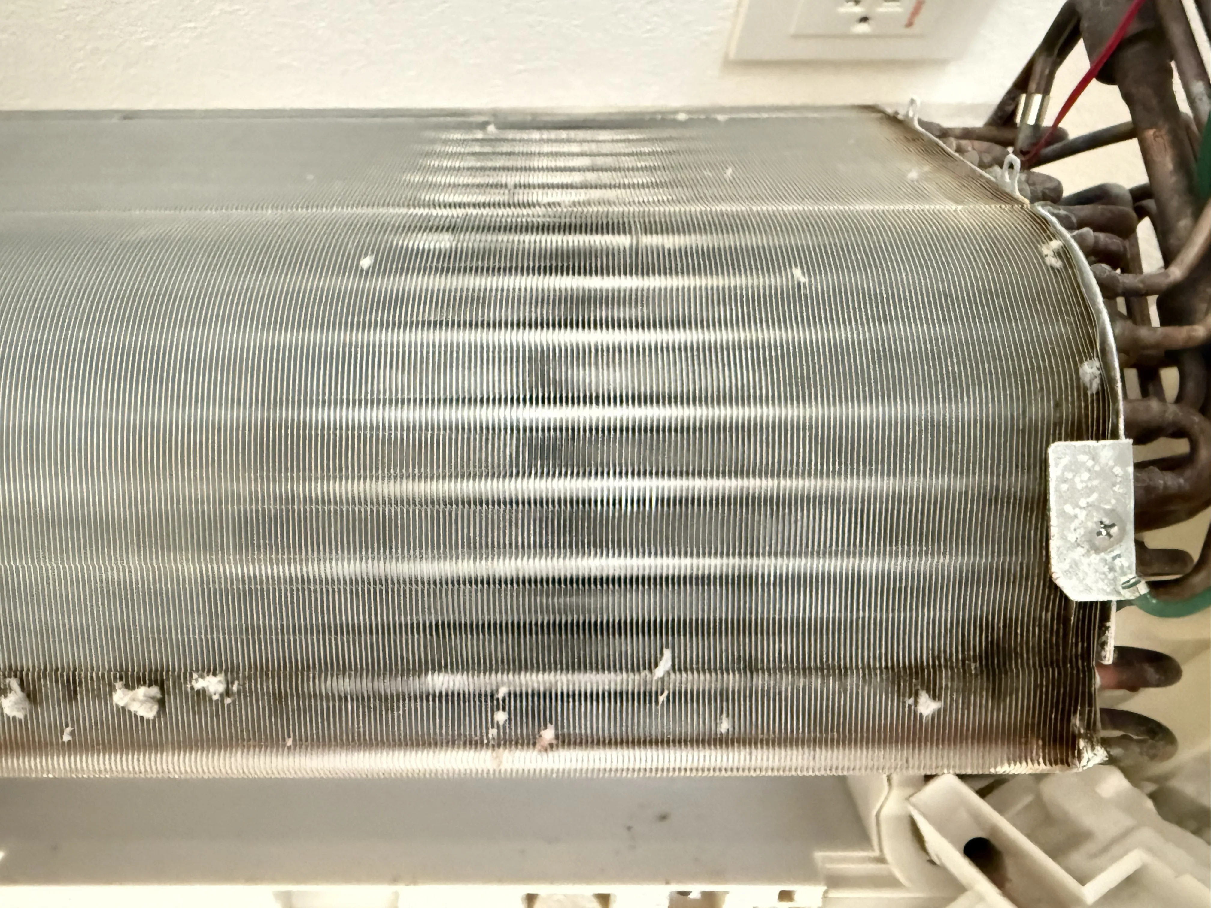 熱交換器の奥とドレンパンに汚れが確認できました。