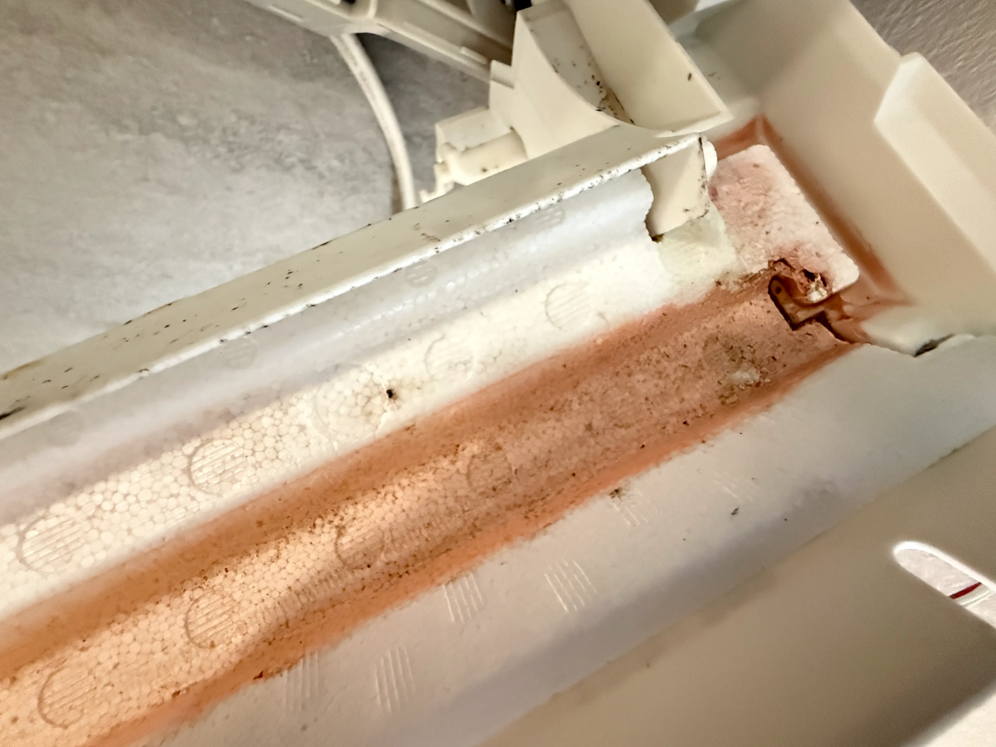 - ドレンパンにピンク色のヌメリ(カビ・雑菌)が付着
